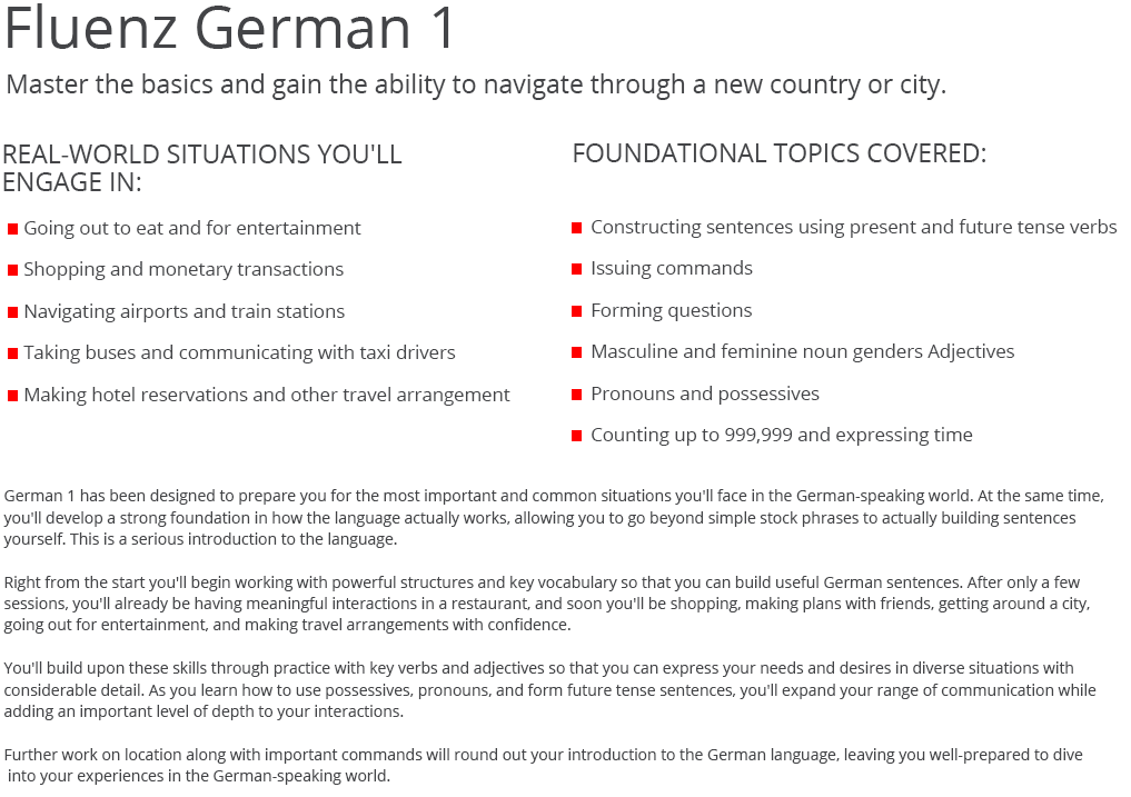 For years those truly serious about their German have been praising Fluenz as the most powerful tool to learn that language....
